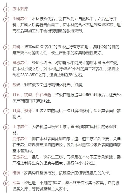 家具所使用材料除了要符合绿色环保要求,还有各自不同的要求,如:板材有密度、强度、吸水膨胀率、板面握钉力诸多要求;油漆有硬度、耐磨性、抗冲击、耐黄变性诸多要求。